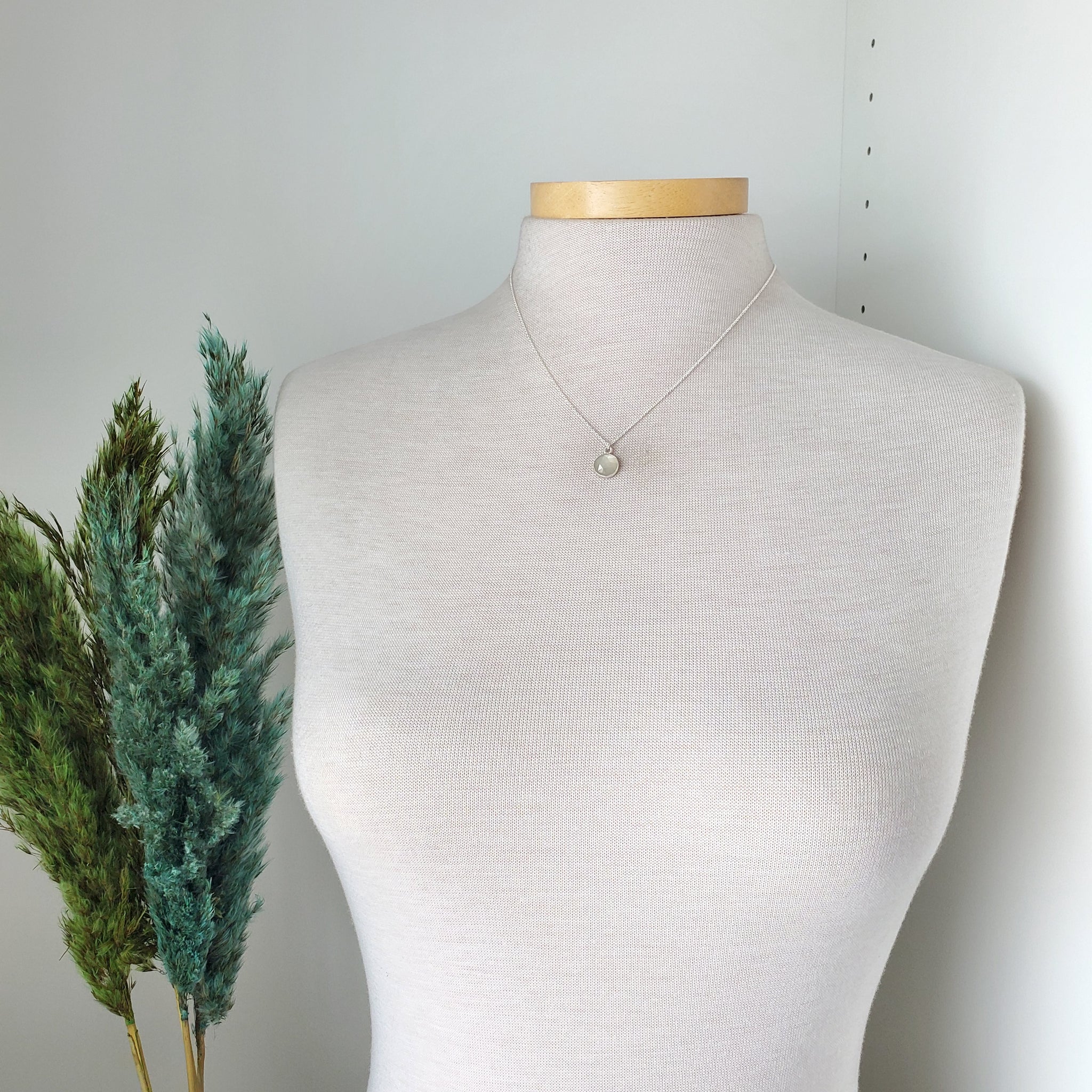 The Grey Moonstone Necklace offers simple elegance with a faceted 10mm grey moonstone pendant set in sterling silver, designed to elevate any outfit while providing a timeless accessory. This natural moonstone jewelry features a silky flash that catches the light beautifully, making it an elegant gemstone pendant ideal for everyday wear or special occasions. Crafted with a 14x10mm pendant on a sterling silver chain, this necklace delivers heirloom quality jewelry that lasts. The Grey Moonstone Necklace supports personal style with options for custom chain length necklace and silver chain upgrade, ensuring the perfect fit and look.