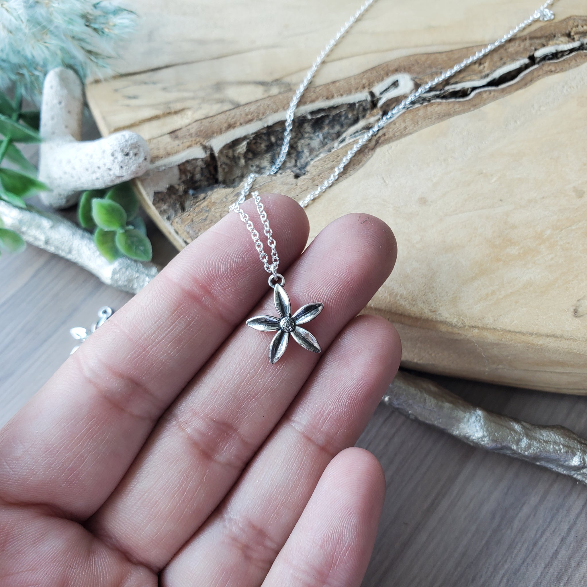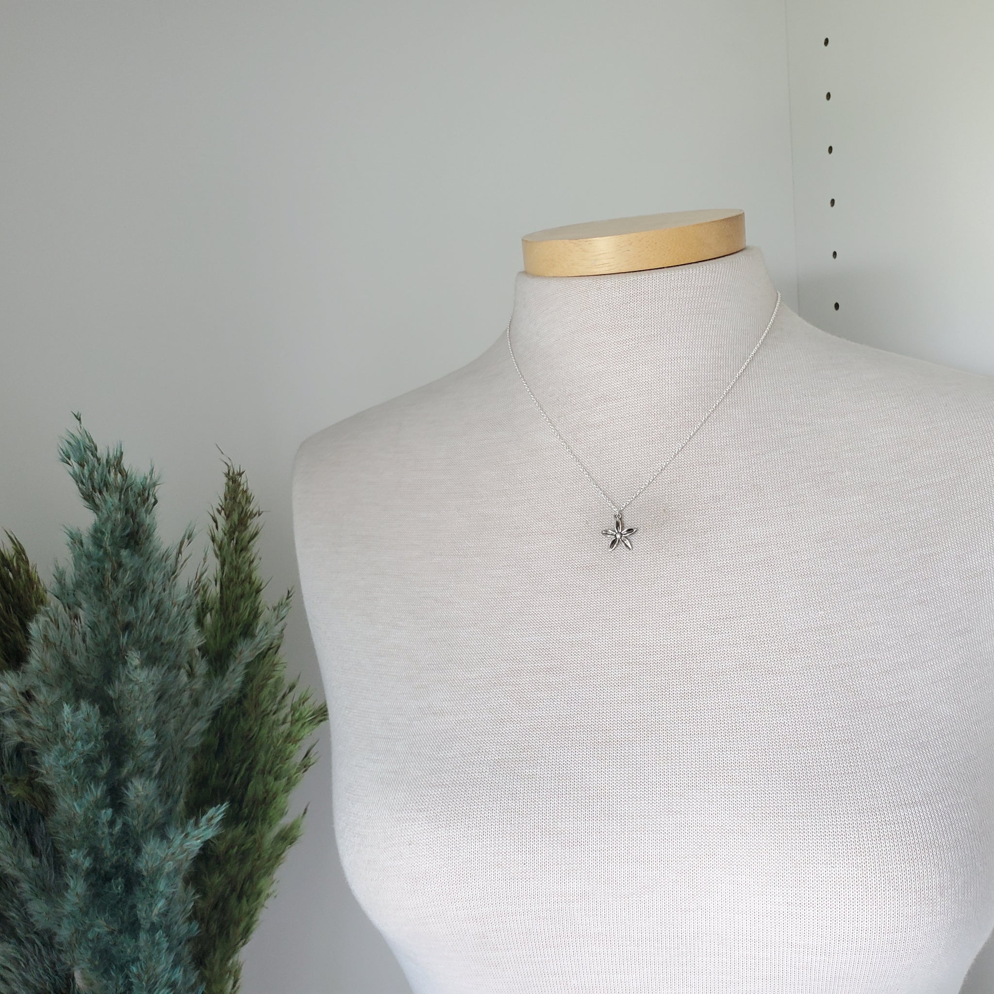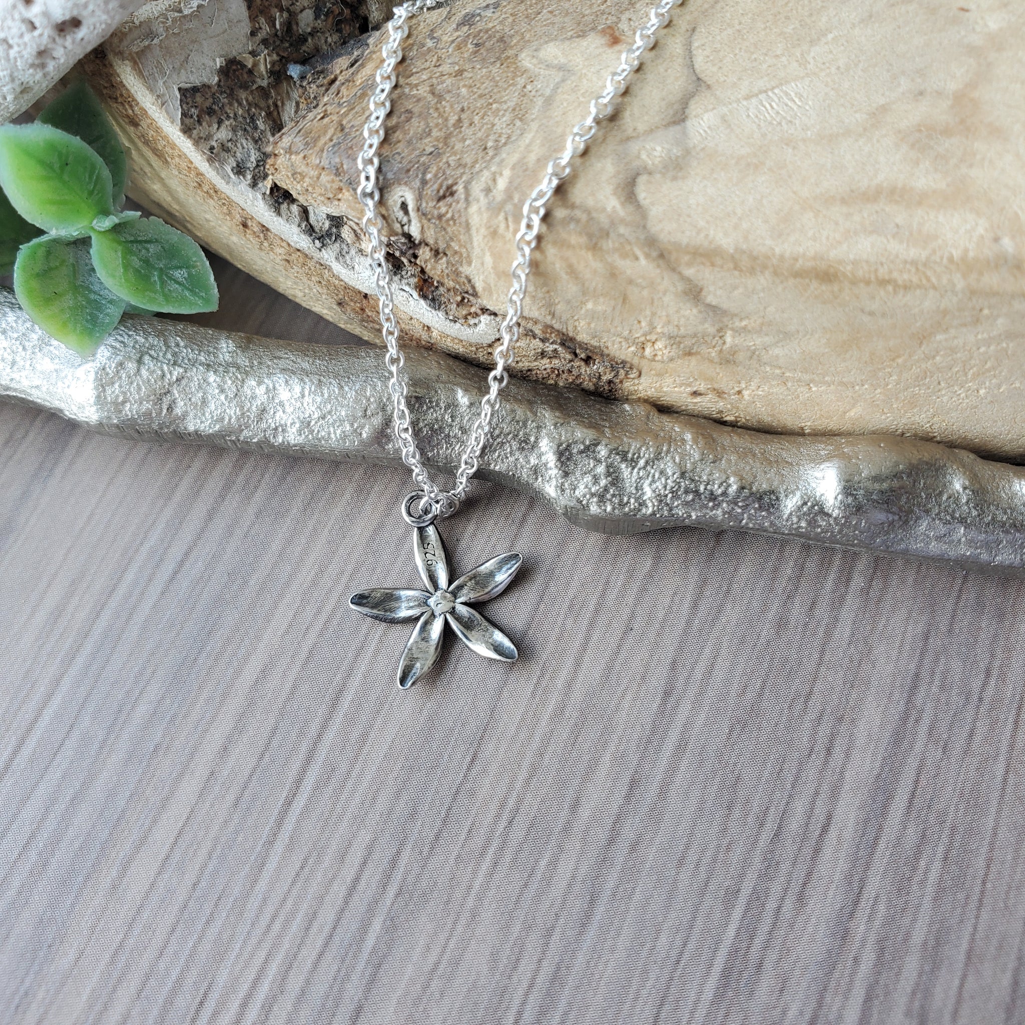 This necklace is made up of a Sterling Silver chain with a 3D Sterling Silver 16x14.5mm Flower Pendant.