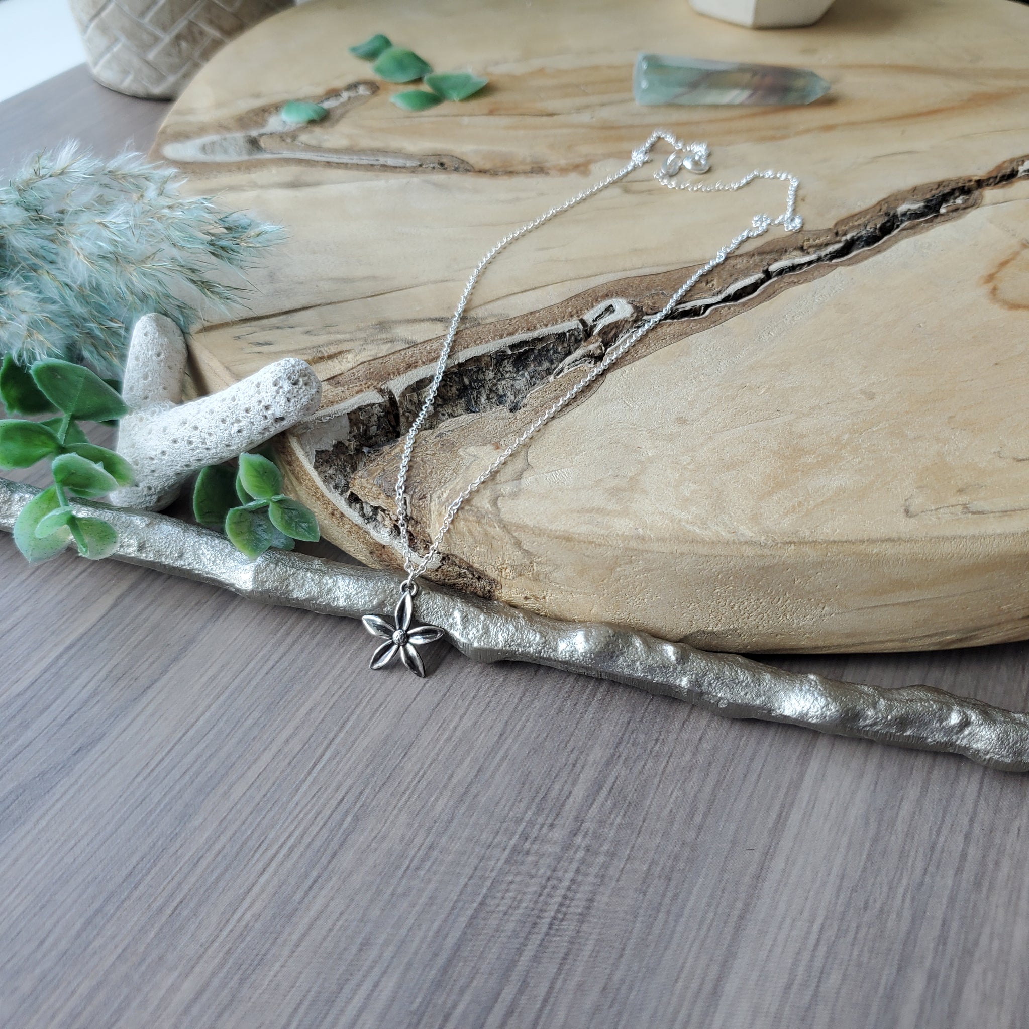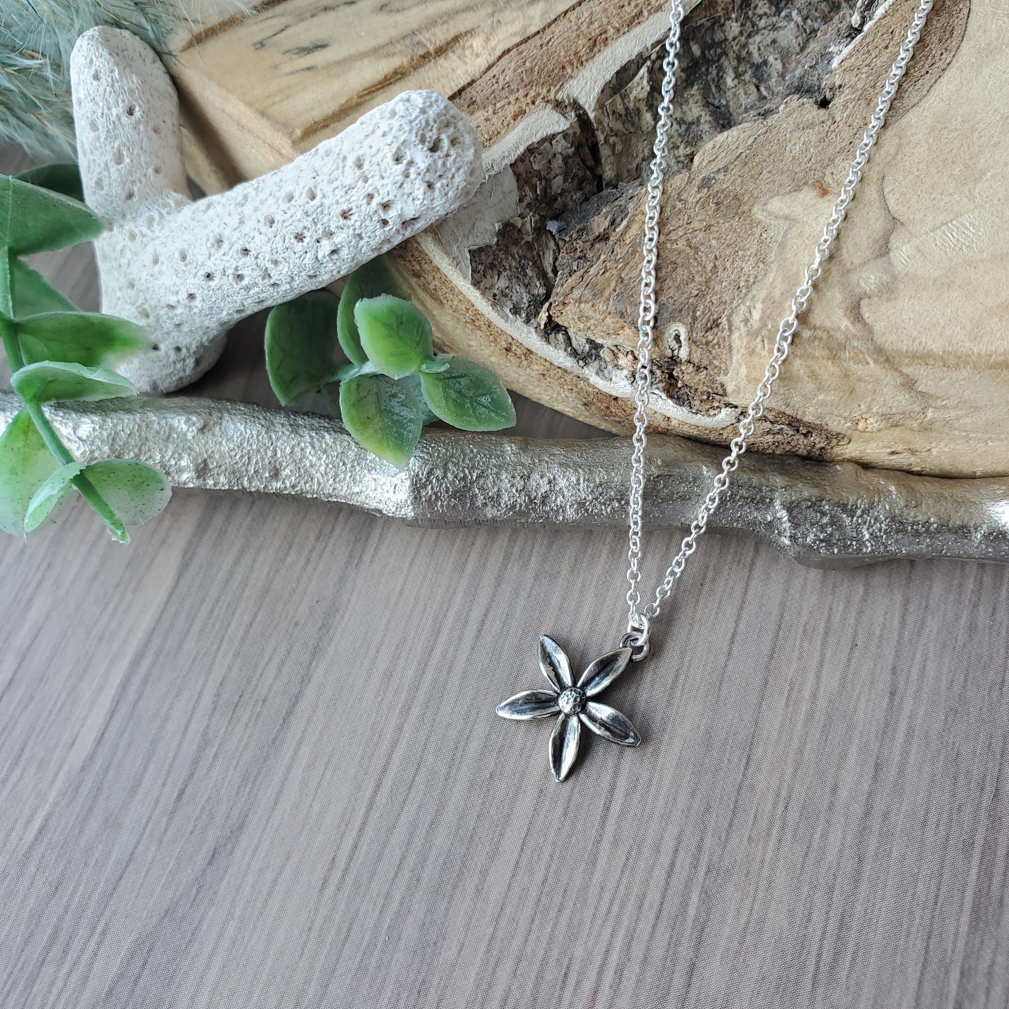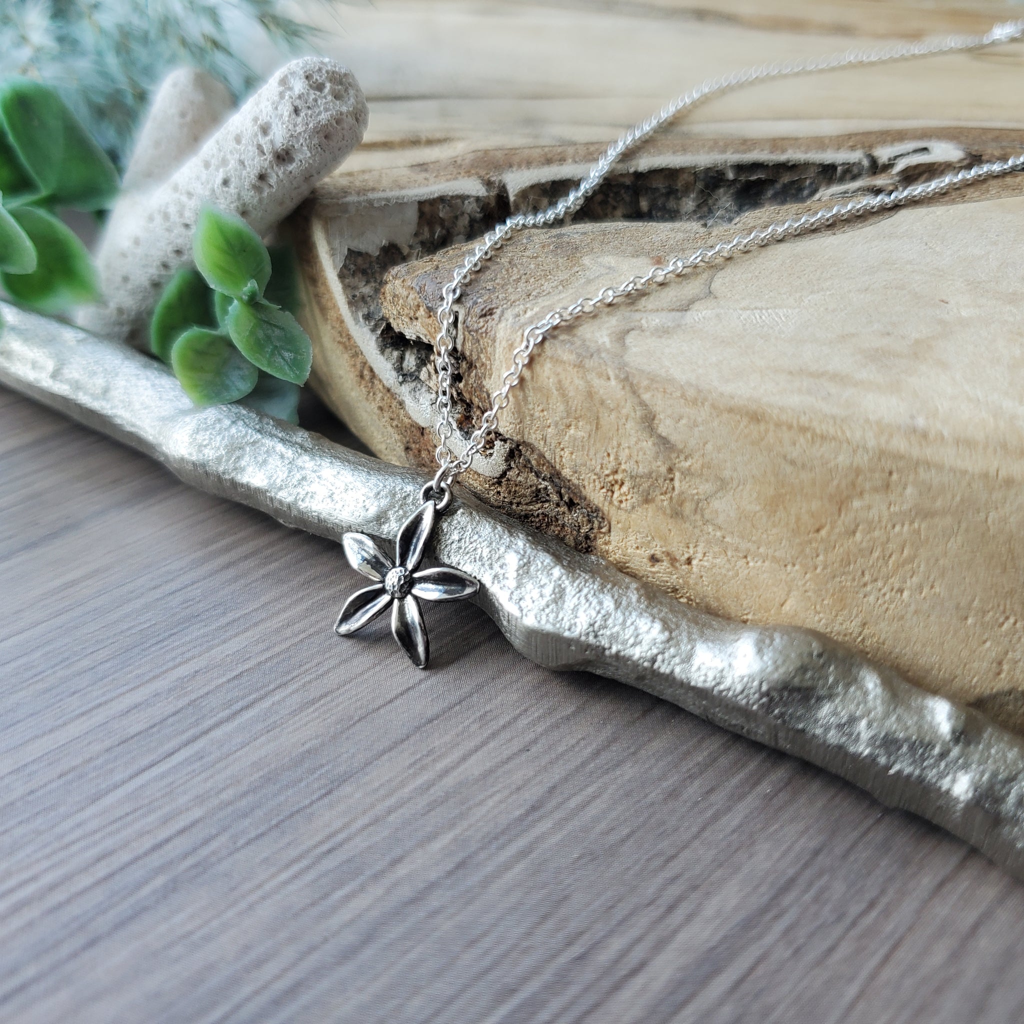 This necklace is made up of a Sterling Silver chain with a 3D Sterling Silver 16x14.5mm Flower Pendant.