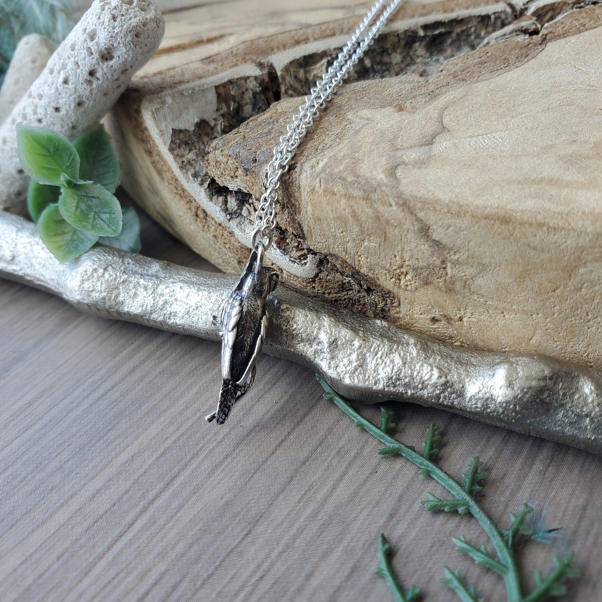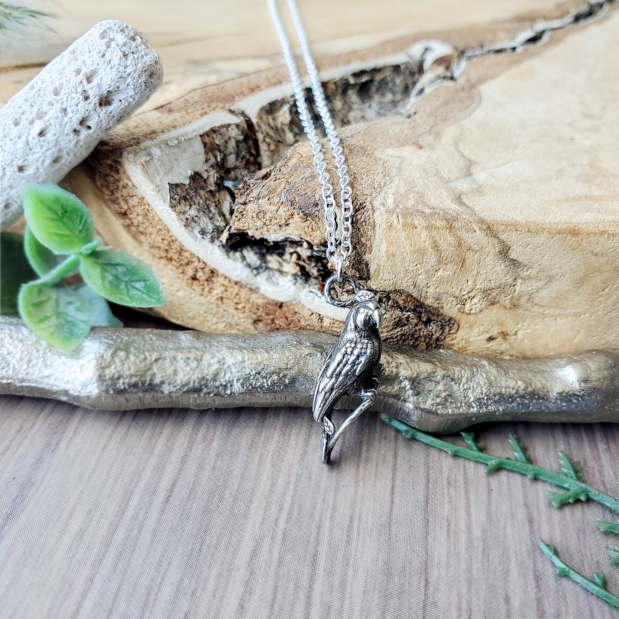 A sterling silver 23x8mm 3D Parrot on a Branch hung on a sterling silver chain.