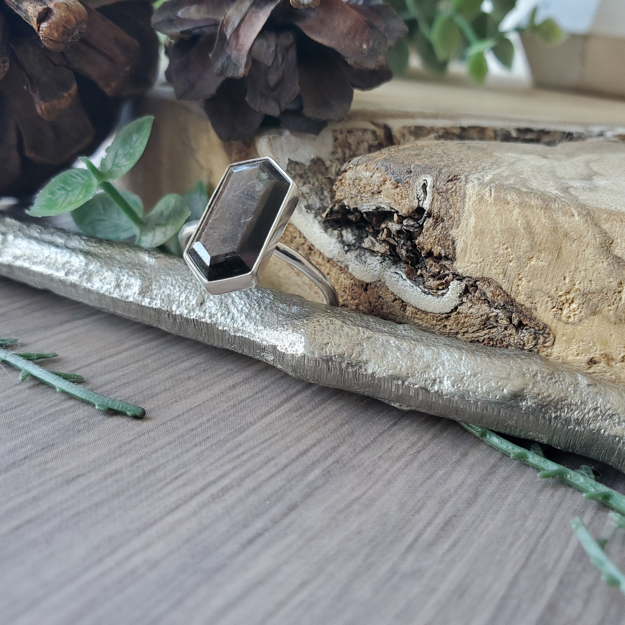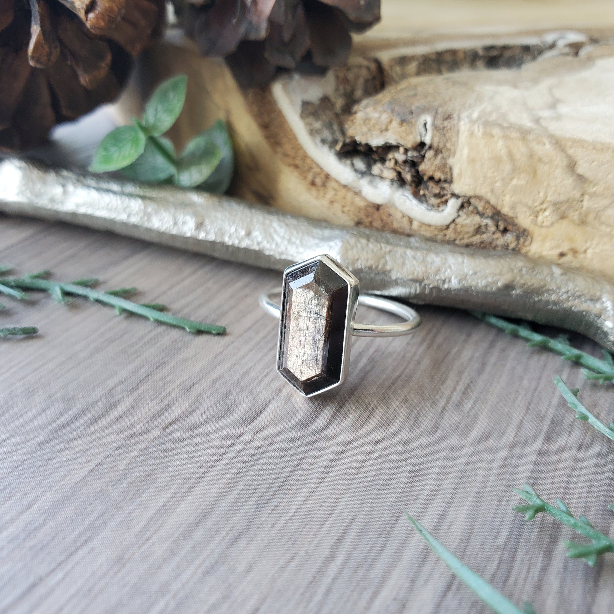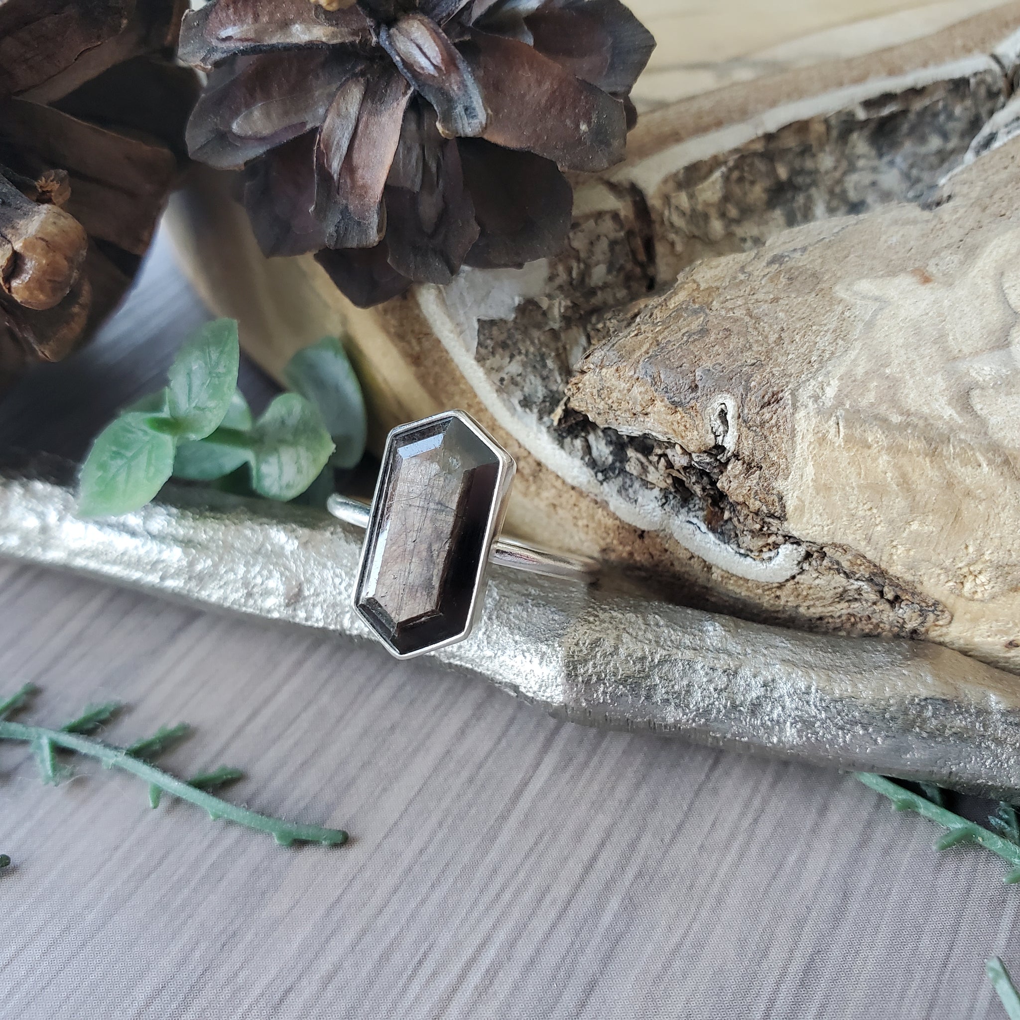 The golden sapphire ring from Silver Moose Arts is a stunning piece of natural sapphire jewelry designed to deliver elegance and timeless style. Crafted with a faceted sapphire gemstone measuring 8x15mm, this geometric sapphire ring features a unique blend of brown and bronze hues that create a warm, inviting look. Set on a 1.6mm sterling silver ring band, this delicate gemstone ring offers both durability and comfort, making it perfect as a minimalist stacking ring or worn alone for a refined statement. The golden sapphire ring is ideal for those seeking fine jewelry gifts or celebrating September birthstone traditions.